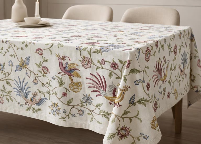 Intricate crewel embroidery bringing texture to life.