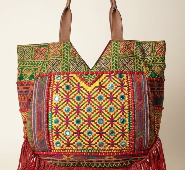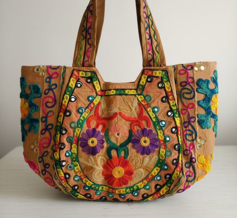 Our bags are made using premium materials including leather, suede, faux leather, and canvas, enhanced with embroidery, prints, and crystal bead details. Each design reflects a balance of handcrafted skill and modern precision, giving you a bag that is stylish, durable, and uniquely elegant.
